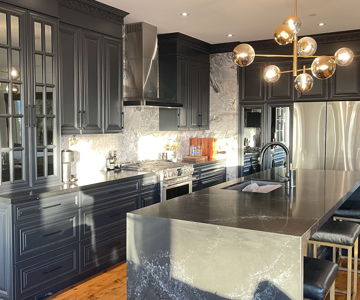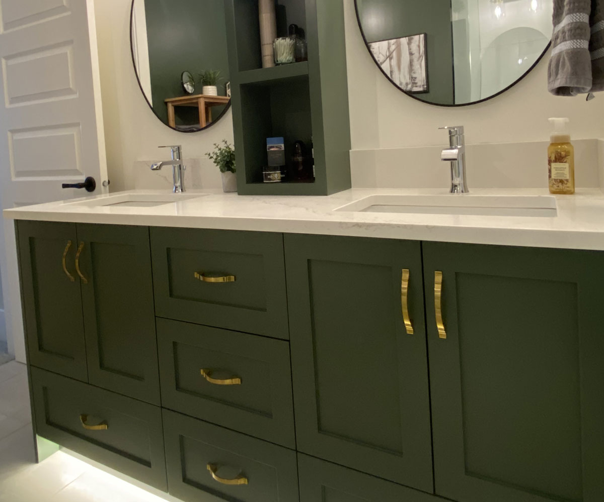 Most wood, MDF, and previously painted cabinets can be refinished as long as they are in good condition. Refinishing offers a high-end result without the cost of replacing them